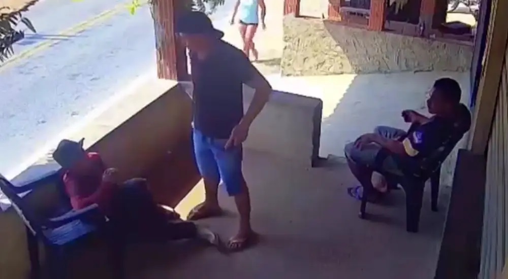 Imagens de uma câmera de segurança de uma residência próxima registraram o momento em que o suspeito chega ao local e desfere dois golpes de faca na região do tórax da vítima. Nas imagens, é possível ver que o homem atingido cai ao solo e não reage à ação.