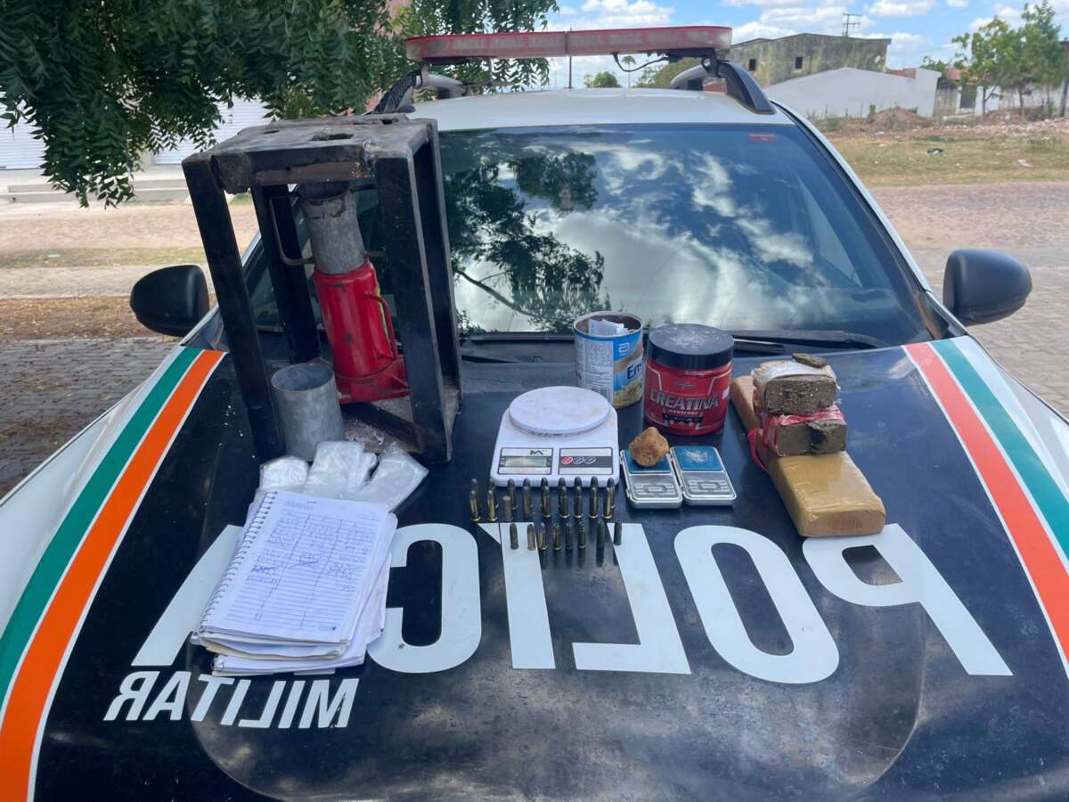 A Polícia Militar do Ceará (PMCE) apreendeu, na manhã dessa segunda-feira (8), mais de um quilo de drogas, munições e diversos materiais utilizados para o tráfico, durante uma ação policial no município de Mucambo – Área Integrada de Segurança 14 (AIS 14) do estado.