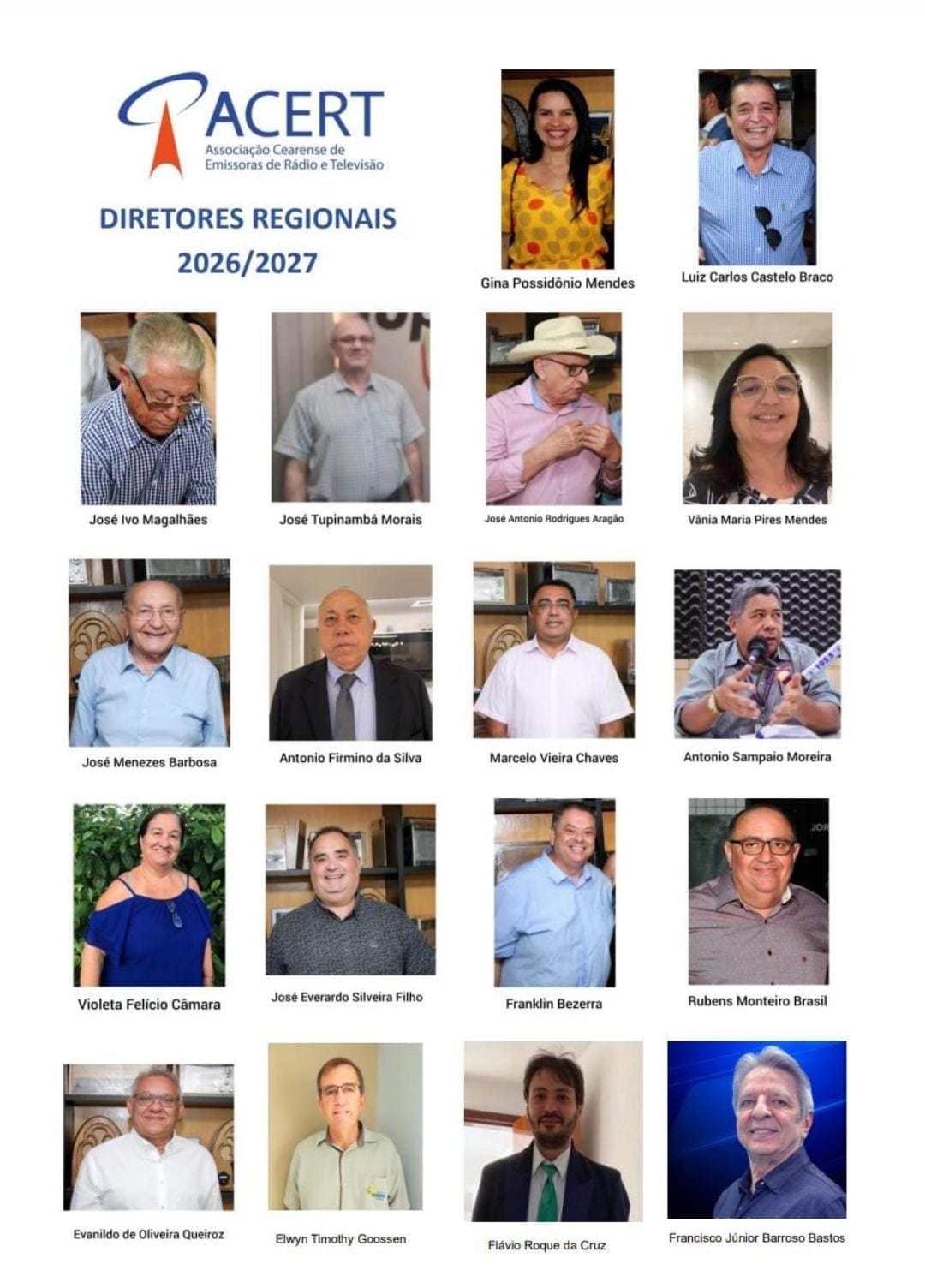 REGIÃO CENTRO SUL: Franklin Bezerra (Antena Sul FM – Iguatu) e José Rubens Monteiro Brasil (Brasil FM – Icó).