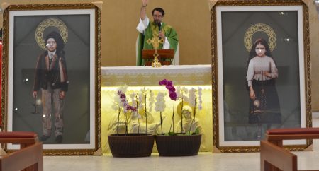 Na celebração eucarística das 10h da manhã deste domingo, o Santuário Diocesano Nossa Senhora de Fátima viveu um momento de profunda espiritualidade e comunhão com o Santuário de Fátima, em Portugal, com a ação do envio dos ícones em estampa dos pastorinhos Francisco e Jacinta Marto, protagonistas das aparições marianas de 1917.