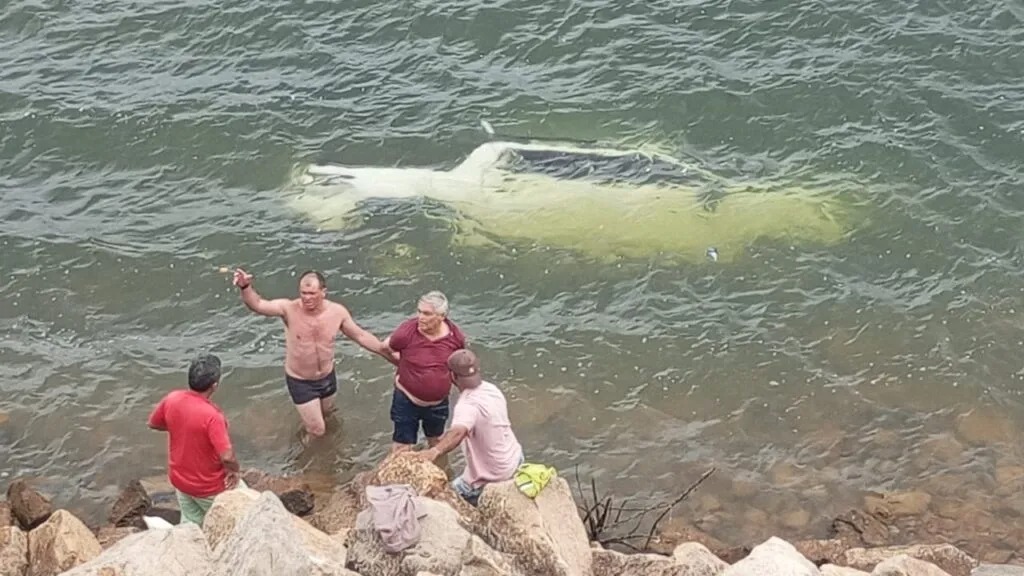 Pessoas que transitavam pela área perceberam o ocorrido e agiram rapidamente. O grupo conseguiu retirar o idoso do interior do carro antes que o veículo afundasse completamente no reservatório.