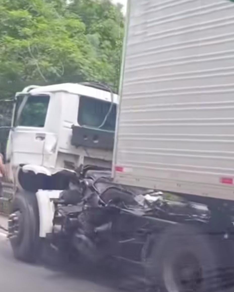 Com o impacto, a cabine do veículo sofreu danos materiais significativos. Até o momento, não há confirmação de vítimas com ferimentos graves.